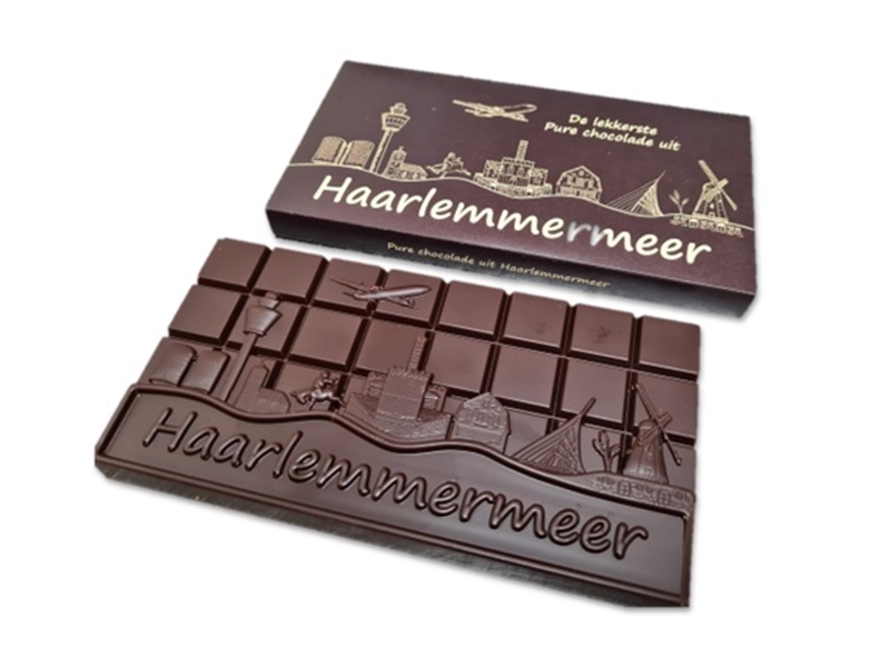 Onze zelfgemaakte echte Haarlemmermeerse chocolade reep!