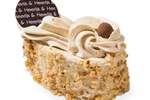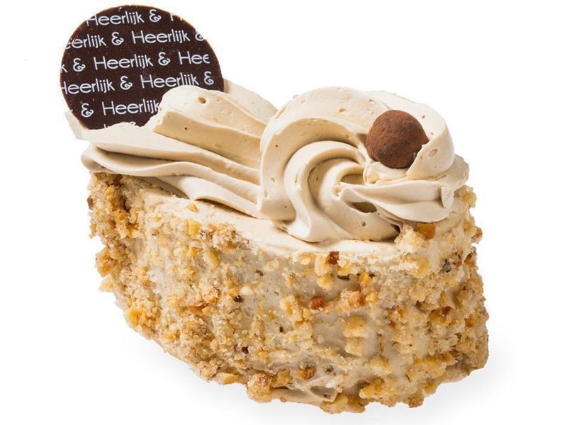 Verrukkelijk gebakje tjokvol met hazelnoot en hazelnootschuim. Met een toef moccacrèrme met stukjes nougat en een huisgemaakt chocolaatje.