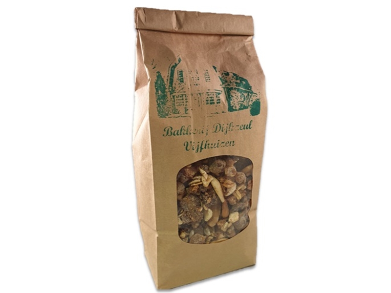 Heerlijke mix van verschillende noten, muesli, pure chocolade en honing. Per pakje van 400 gram